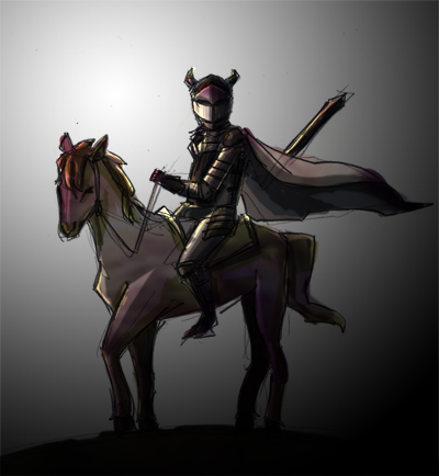 この悪者は意外と紳士でして、戦うときは馬から降りて、丸腰(笑)です。