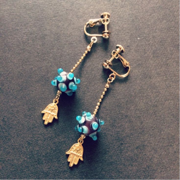 ガラスビーズとハムサの手イヤリング