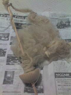 でも今日は学校でヒツジの毛を紡いだんだぜ。楽しかった~。刈ったままの毛はゴミとか油がついててワイルドな香り。葉っぱとか草の種とかついてるのを見ると、ヒツジが草むらをコロコロしてるのを想像するなあ。可愛い。