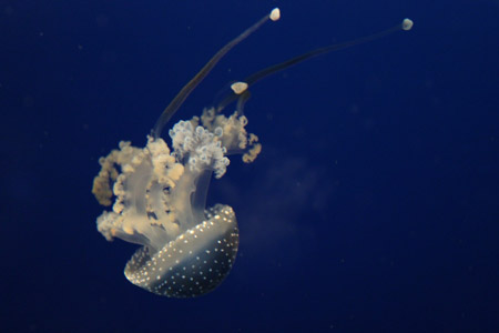 ↓同じく海遊館の、キノコのようなクラゲちゃん。頭の色がキレイです。