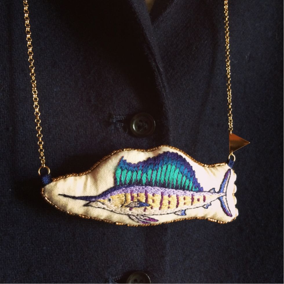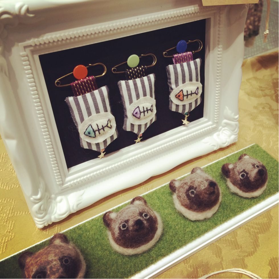 カジキの刺繍ネックレスやたぬきブローチに加えて、いくつか新作もできました。