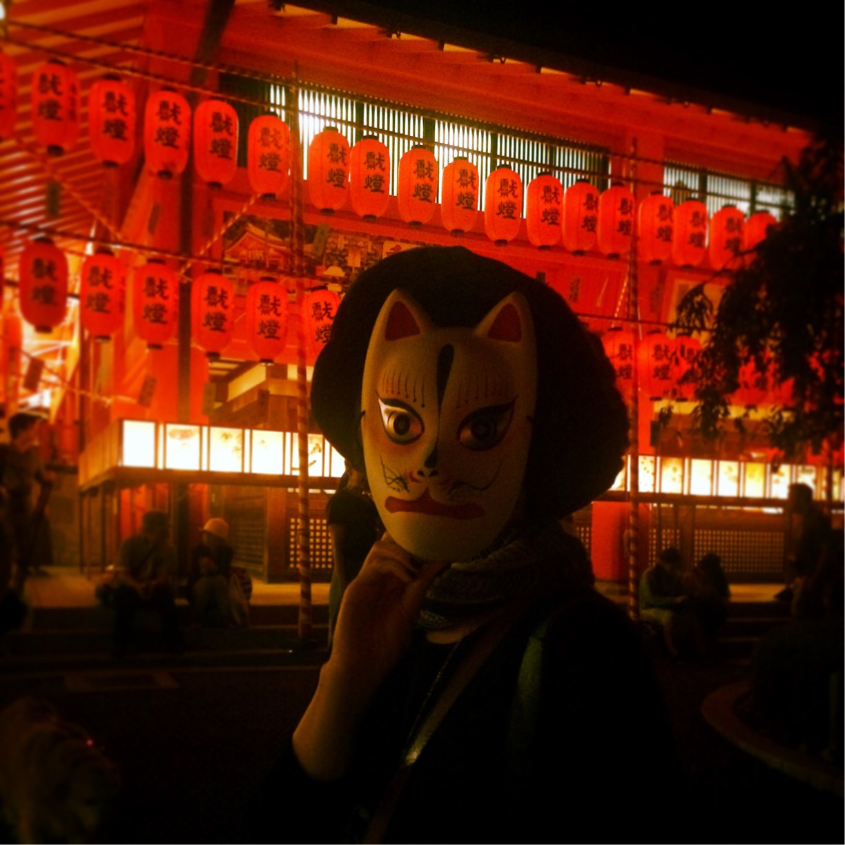 狐面を買ってご満悦…